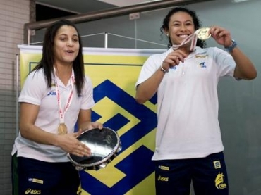 Todas as jogadoras se disseram bastante surpresas com a festa no desembarque na manhã desta terça. Cerca de 50 pessoas, entre eles muitos familiares e amigos, receberam as atletas com bandeiras, cartazes e gritos de "é campeão". Houve bastante choro e emoção nos reencontros, e as campeãs posaram para fotos com o troféu e as medalhas do Mundial.