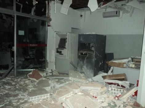 Cerca de oito homens fortemente armados explodiram, esta madrugada, três caixas eletrônicos de uma agência bancária, localizada no Distrito de Ouro Branco do Sul, no município de Itiquira (região Sul). De acordo com informações do cabo da Polícia Militar, José Pereira da Cunha, todos estavam de coletes, capuz e armados com pistolas e fuzis. "Aparentemente não conseguiram levar nada. Eles fugiram em três veículos, um Corsa, uma Frontier e um Polo, que foi incendiado na MT-299, próximo a BR-163", disse, ao Só Notícias.