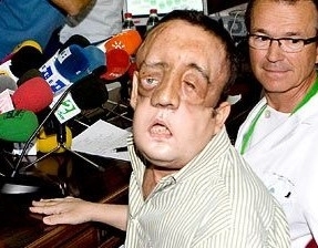 Espanhol faz 1ª aparição após transplante de rosto