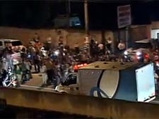 Um comboio levou o casal Alexandre Nardoni e Anna Carolina Jatobá do Fórum de Santana para as casas penitenciárias onde eles passarão a noite. Ele ficará esta noite no Centro de Detenção Provisória (CDP) de Pinheiros e ela na Penitenciária Feminina de Sant’Anna. Centenas de pessoas cercaram a saída dos caminhões que transportavam o casal tentando impedir a passagem dos dois condenados. Neste sábado, o casal será transferido, possivelmente para penitenciárias do interior paulista.