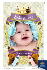 Maria Eduarda Rocha de Almeida. Este é o nome da fofura, de apenas um ano, que foi escolhida pelo público para ser a representante do Espaço Família do Pantanal Shopping do mês de fevereiro. A pequena concorreu com João Emanuel Rampini e José Eduardo Aquino Simas. A foto de Maria Eduarda pode ser conferida no Espaço Família e no site do shopping (http://www.pantanalshopping.com.br/espaco_bebe.php).