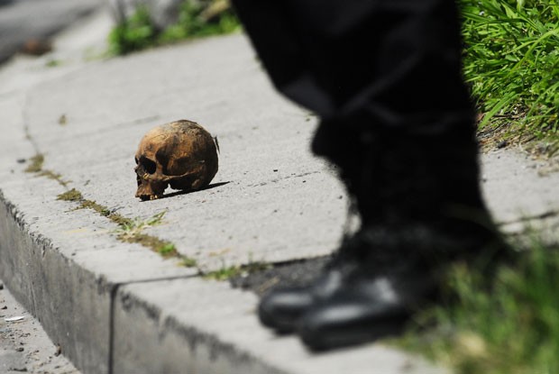Um crânio humano foi encontrado na quarta-feira (24) em uma estrada movimentada perto de San Salvador, capital de El Salvador (Foto: Ulises Rodriguez/Reuters)