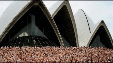 Mais de cinco mil pessoas ficaram nuas nos degraus da Ópera de Sydney, nesta segunda-feira, posando para o fotógrafo americano Spencer Tunick.