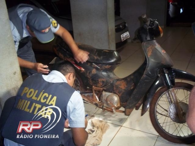 Uma moto Biz placa JYT 6087 de Tangará da Serra foi localizada neste final de semana pela Polícia Militar. Ao receber a denúncia a guarnição comandada pelo Cabo André foi até a conhecida ‘Cohabinha’ no final do bairro Jardim Presidente e encontrou a moto escondida perto de um rio e coberta com um papelão.