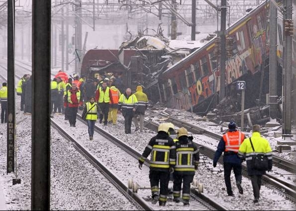 Dois trens de passageiros colidiram de frente no subúrbio de Bruxelas nesta segunda-feira (15), matando 20 pessoas, informaram oficiais belgas. Os vagões se chocaram no horário de pico em meio à neve, nas proximidades de uma estação de Buizingen.