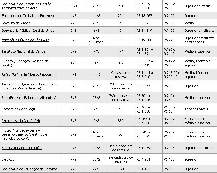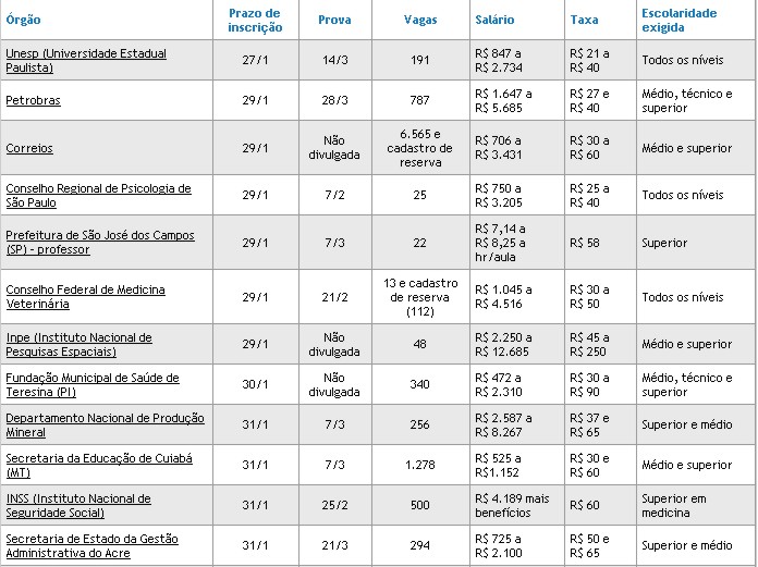Até o próximo domingo (31), doze processos seletivos encerram prazos de inscrição – entre eles há concursos como o da Petrobras e o dos Correios.