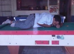 O vereador de Ribeirão Cascalheira, Vilson Campos (PMDB), flagrado numa foto inusitada dormindo em cima de uma mesa de sinuca abraçado a um taco ganhou repercussão na internet e virou assunto em toda a cidade de 9 mil habitantes, a 960 km de Cuiabá. A opinião pública está dividida no município com moradores se dizendo indignados, pedindo até mesmo a cassação do vereador, e outros esperando pelo menos uma explicação do parlamentar.