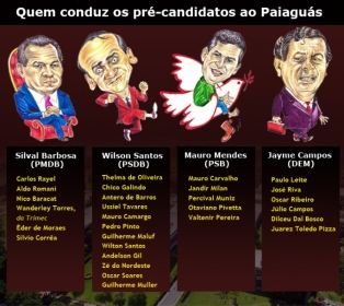 A equipe do senador Jayme Campos, principal aposta do DEM na corrida sucessória, conta com o marqueteiro Paulo Leite, que presta consultoria para o ex-governador há quase 20 anos, o conselheiro aposentado do TCE e presidente estadual do DEM Oscar Ribeiro, o deputado Dilceu Dal Bosco, o irmão de Jayme, ex-governador Júlio Campos, e o ex-secretário de Fazenda de Várzea Grande na gestão Jayme, Juarez Toledo Pizza. O presidente da Assembleia, José Riva (PP), também se tornou um dos principais articuladores do nome de Jayme ao Paiaguás, com direito a vez e voz nas reuniões.