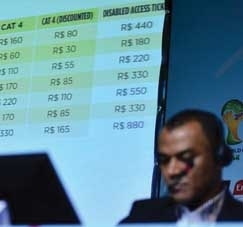 Com esse valor, a Fifa cumpre a promessa de comercializar o ingresso mais barato da história recente dos Mundiais. Na África do Sul, o preço mínimo era de 140 rands, o que corresponde a R$ 31,50. Os ingressos começam a ser vendidos no dia 20 de agosto.
