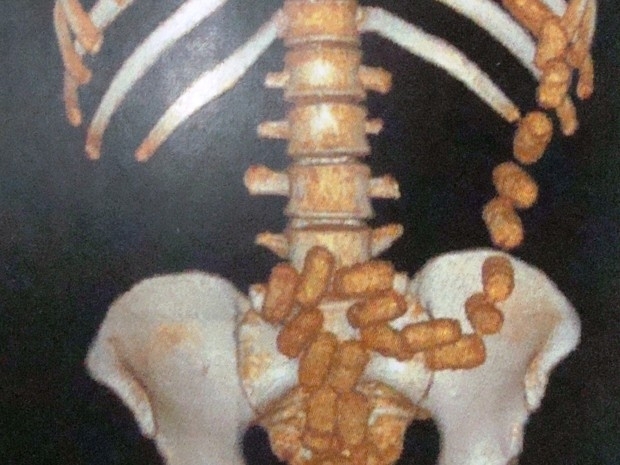 Criminoso era servente de pedreiro, de 31 anos, natural de Goiás. Exame de tomografia confirmou a presença das cápsulas no intestino.