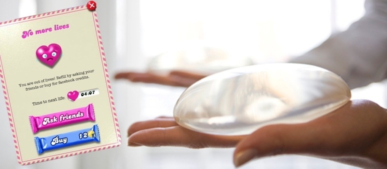 Uma chinesa que ficou presa numa fase complicada de um joguinho de celular descobriu que existe algo mais terrível do que ficar sem vidas no Candy Crush quando seus implantes de silicone explodiram.