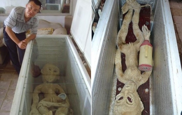 O chinês Li Kai pegou cinco dias de cadeia por ter inventado a história sobre a captura de um extraterrestre perto do rio Yellow, em Binzhou, na província de Shangdong, na China. Ele havia divulgado fotos da falsa criatura dentro de um freezer.
