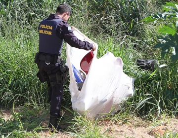 A Polícia Militar encontrou, agora há pouco, um saco com várias peças de motos. O material estava jogado em um terreno baldio na avenida Tarumãs, no bairro Maringá 2. Uma pessoa passava pelo local, viu o saco e acionou os policiais militares.