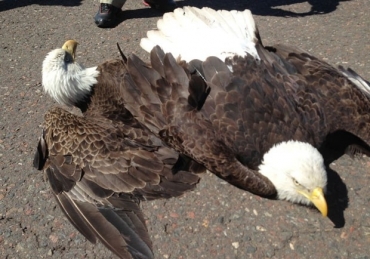As águias foram encontradas na pista do aeroporto local por funcionários do Departamento de Recursos Naturais do estado. Elas não puderam ser separadas imediatamente e, por isso, foram encaminhadas para o centro de reabilitação de animais selvagens da cidade.