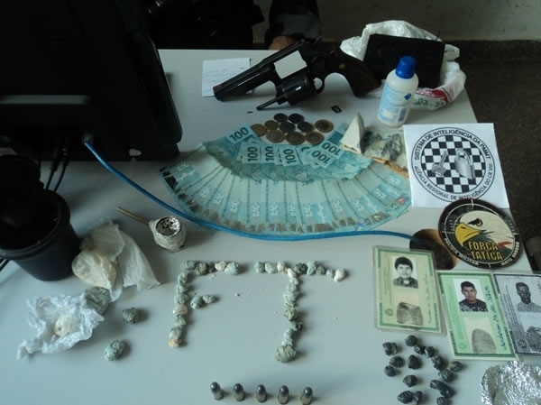 Na delegacia uma policial fez uma revista pessoal e localizou nas partes intimas de Maria Madalena Marques da Silva, 41, esposa de Marcos e mãe de Anderson, uma porção média, um cachimbo e 33 ‘petequinhas’ de substancias aparentando ser pasta base de cocaína. Ainda durante uma varredura no veiculo, foi localizado no forro mais 15 petecas e um revolver calibre 38 e três munições intactas.