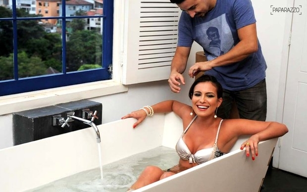Kamilla só ficou nervosa quando precisou tirar todas as peças e fotografar nua, apenas com protetores especiais cor da pele, escondendo os seios e as partes íntimas. Nesse momento, deixou escapar: “Nem sei o que Eli (o ex-BBB Eliéser com quem está namorando) e o meu pai (o bancário Luis Carlos) falariam se me vissem assim...”, comentou nervosa. Para deixar a filha à vontade, o pai preferiu ficar na parte externa da suíte onde a paraense posou. A suíte, aliás, foi a mesma onde Amy Winehouse ficou hospedada quando fez show no Rio, em janeiro de 2011.