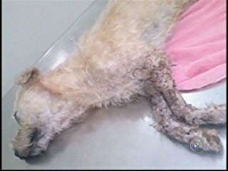 Um cão da raça poodle morreu vítima de maus tratos no fim de semana emVotuporanga (SP). De acordo com testemunhas, o cachorro foi espancado e teve parte do corpo queimado com óleo de cozinha fervente. Ele foi encontrado pela dona dele, que pediu ajuda de agentes da prefeitura que recolhiam amostras de sangue de cães no bairro, para exames de leishmaniose.