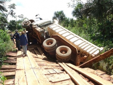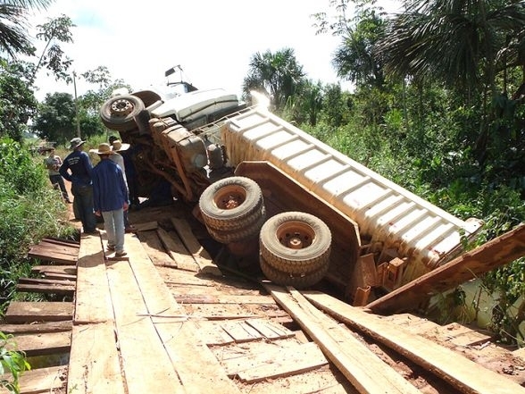 Uma ponte de madeira sobre o córrego Esperança, na zona rural de Colíder (650 km ao Norte de Cuiabá), quebrou ao não suportar o peso de um caminhão carregado com cascalho. O veículo ficou "pendurado" no lado da ponte e não chegou a cair no córrego. A estrada dá acesso a comunidade do Areia.
