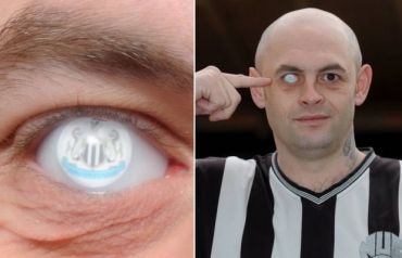 Um torcedor de 35 anos fanático pelo Newcastle, equipe de futebol da Inglaterra, resolveu mostrar o amor ao seu clube colocando o escudo do mesmo em seu olho. Ele aproveitou o fato de ter um olho de vidro para efetuar a medida.