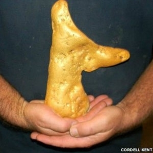 O ouro atualmente é comercializado na Austrália a cerca de 1,6 mil dólares australianos (cerca de R$ 3,4 mil) por onça, o que significa que a descoberta valeria cerca 283,2 mil dólares australianos (cerca de R$ 600 mil), mas a sua raridade e o fato de que a pepita pesa bem mais do que um quilo encarece o valor.