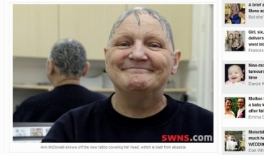 Uma mulher que ficou careca por causa de problema na tireoide resolveu a questão de uma forma insólita: tatuando cabelo!