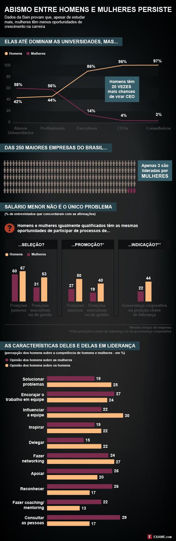 Apenas 19% das executivas acreditam que têm as mesmas chances de promoção que homens tão qualificados quanto elas, segundo levantamento da Bain & Co