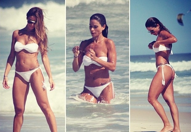 De biquíni branco, Dany Bananinha exibe corpão na praia