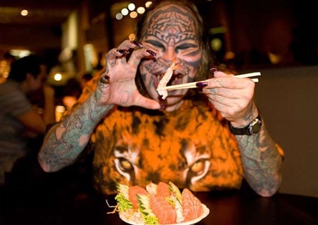 Conhecido como "homem-gato", o norte-americano Dennis Avner morreu aos 54 anos no último dia 5 de novembro. Na foto, ele em visita ao Brasil em novembro de 2009. (Foto: Flavio Moraes/G1)