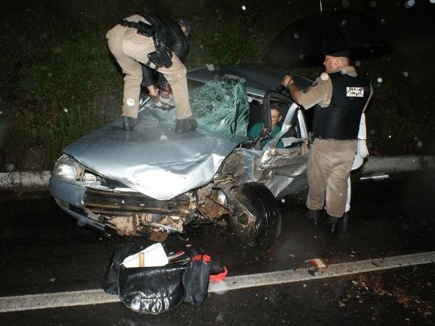 De acordo com a Polícia Rodoviária Federal (PRF), o veículo Gol invadiu a contramão e acabou colidindo de frente com o caminhão, que trafegava em sentido oposto.