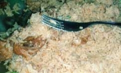 Bazzi conta que sua tia foi até a cozinha do restaurante para ver como estava sendo o procedimento para atender todos os clientes. “Ela voltou horrorizada”, disse. Segundo ele, os garçons pegavam os restos que as pessoas não havia comido e recolocavam na panela onde a galinhada estava sendo cozinhada para servir de novo. “No mesmo momento em que minha tia foi na cozinha, uma moça que estava comendo do nosso lado encontrou um fio dental usado no prato dela”.