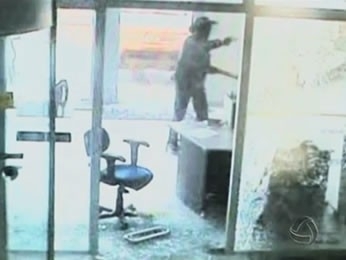 Imagens do circuito interno de segurança mostram o momento em que um grupo de assaltantes invadiu uma agência bancária, há 15 dias, na cidade de Marcelândia, a 712 quilômetros de Cuiabá. Uma equipe de 40 policiais militares permanece na região fazendo buscas para tentar prender os suspeitos. Na segunda-feira (22), um dos suspeitos foi localizado e morto durante um tiroteio com a polícia.