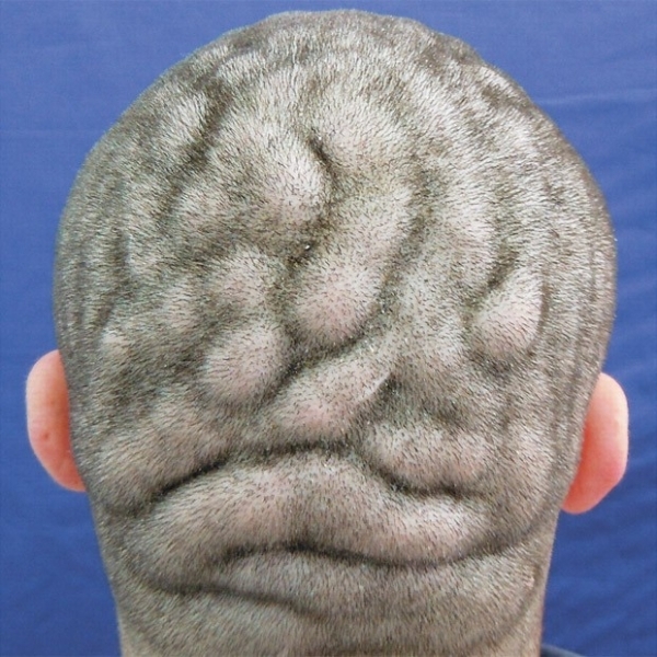 Segundo os médicos, há evidências de que o paciente deve possuir "cutis verticis gyrata", uma condição morfológica incomum em que o couro cabeludo fica com sulcos e calombos parecidos com uma superfície cerebral.