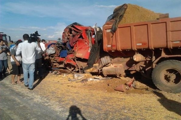 O motorista Dorildo Pereira, de 41 anos, ficou gravemente ferido, nesta sexta-feira à tarde, após uma colisão entre o caminhão Mercedes-Benz, carroceria basculante, que ele conduzia, e uma carreta bitrem Volvo, que estava carregada com milho, na BR-163, entre Sorriso e Sinop.
