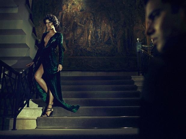 Usando um longo vestido com fenda frontal e decote profundo, Isabeli Fontana desce uma escadaria em um editoral glamouroso feito para a revista britânica Shön, que chega às bancas nesta segunda-feira (15). Além de estrelar a capa, a top brasileira também recheia algumas das páginas internas.