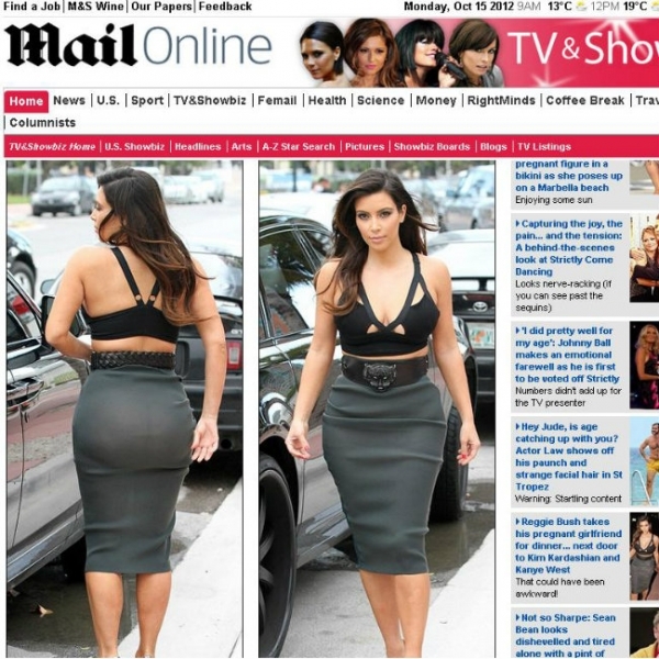 Kim Kardashian não se importa mesmo em vestir roupas que mostrem seu corpo, sejam elas muito justas, marcando gordurinhas salientes, ou até aparecendo sem sutiã. Na noite do último domingo (14) ela saiu para jantar em Miami com o namorado, Kanye West, vestindo uma saia muito transparente, deixando o bumbum claramente visível.
