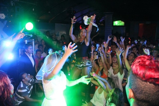 Valesca Popozuda fez um show com direito até a noiva na noite de sexta-feira, 31, em uma boate da Lagoa Rodrigo de Freitas, na Zona Sul do Rio de Janeiro. A cantora, que durante a apresentação chegou bem perto dos fãs para tirar fotos, chamou a mulher vestida de branco ao palco para jogar o buquê e o pegou.