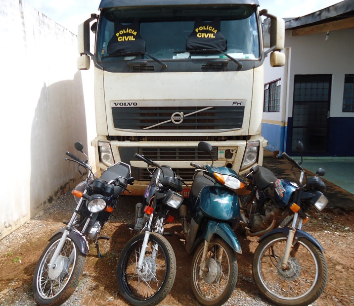 Em buscas no interior do veículo, autorizadas pelo gerente da fazenda, os investigadores encontraram notas fiscais de motocicletas de leilão, chaves de motocicletas e ferramentas como chave de fenda e alicate, utilizadas para lacrar as motocicletas.