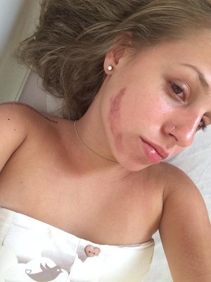 Como a queimadura não diminuiu durante o dia, a estudante de direito resolveu procurar um médico. O laudo constatou que o rosto dela realmente foi queimado. Sofia precisará passar por um tratamento para não ficar com a face marcada.