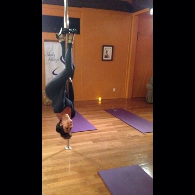Kim Kardashian posta foto da mãe em cano de pole dance Na imagem, Kris Jenner aparece de cabeça para baixo e macacão colado ao corpo.