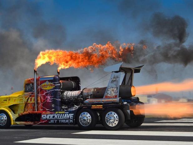 Alimentado por três motores de jatos que geram 36 mil cavalos de potência, o Shockwave é o caminhão mais rápido do mundo, segundo informações publicadas pelo site do jornal Daily Mail. Pesando quatro toneladas, o caminhão atingiu o recorde de velocidade de 605 km/h, sendo mais veloz que o trem-bala japonês, de acordo com a publicação.