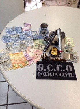 De acordo com os investigadores do GCCO, no momento da abordagem, o suspeito arremessou um pacote que estava em suas mãos e tentou fugir da casa. No entanto, foi preso e em buscas na residência encontrados a arma de fogo, munições, 1 balança de precisão e várias porções de pasta-base de cocaína, pesando cerca de 100 gramas, além da pistola de brinquedo e R$ 122 em notas miúdas de 2, 5, 10 e 20, provenientes do tráfico de drogas.