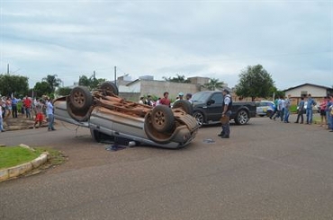Sorriso: L200 capota após colisão na avenida Tancredo Neves