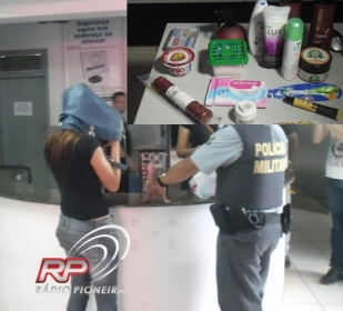 A Polícia Militar prendeu na tarde desta quarta feira (26) uma mulher acusada de ter furtado produtos em um supermercado localizado na Avenida Brasil no Centro de Tangará da Serra.