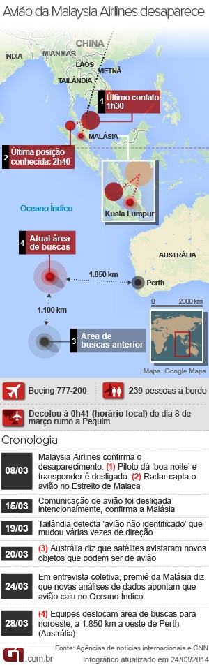 O Boeing 777 saiu da rota prevista uma hora depois de decolar de Kuala Lumpur com destino a Pequim e prosseguiu com o voo por milhares de quilômetros em direção ao sul, antes de cair no mar, provavelmente por falta de combustível.