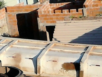 Caçamba de caminhão cai em casas ao descarregar terra em Cuiabá Incidente ocorreu quando caminhão descarregava terra no local. Segundo internauta, duas casas foram atingidas pela caçamba e terra.