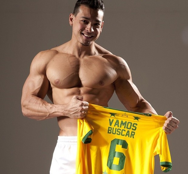 Felipe Franco, o noivo fortão de Juju Salimeni, mostrou que a malhação e dieta vêm dado certo. Além das tradicionais veias saltadas dos braços, o personal mostrou também o dorso super musculoso. A foto postada por ele no Instagram foi para uma campanha publicitária de um suplemento para a Copa do Mundo de 2014.