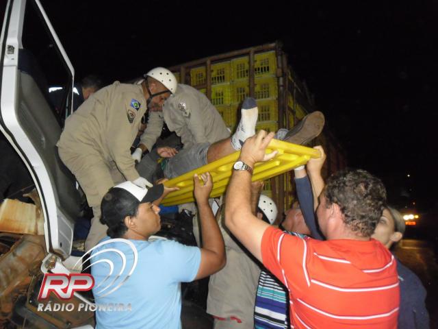 A colisão deixou Lucinei Venâncio da Silva, 26 anos, com vários ferimentos. A vítima que conduzia um caminhão de transporte de frangos ficou presa às ferragens e foi socorrida pelas equipes do Corpo de Bombeiros e SAMU.