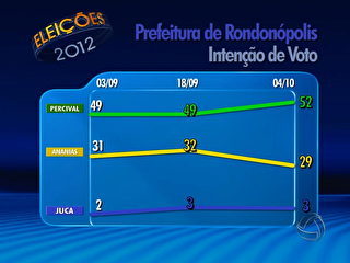Na pesquisa anterior, Percival Muniz (PPS) tinha 49% e está com 52%. O candidato Ananias Filho (PR) tinha 32% e agora tem 29%.