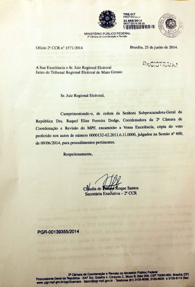 A decisão da 2ª Câmara de Coordenação e Revisão do MPF, do dia 24 de junho, é para que seja mantido em aberto o inquérito policial para investigar crimes eleitorais de falsidade ideológica e uso de documento falso, supostamente cometidos por José Riva nas eleições de 2006.