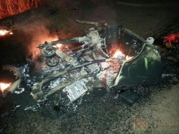 A violência da batida foi tamanha que a moto chegou a pegar fogo. Consta que com o impacto da batida, as vítimas morreram na hora e a moto em que estavam pegou fogo.